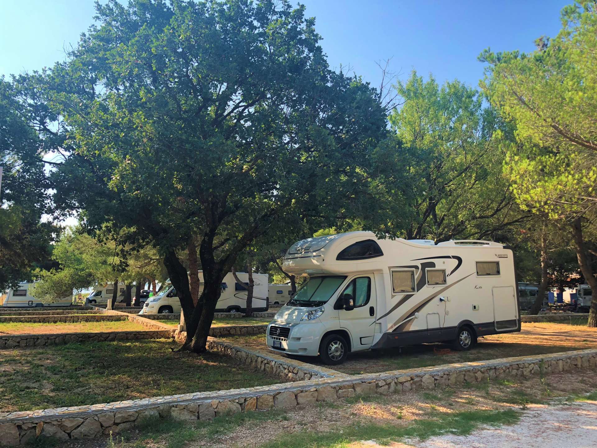Der Campingplatz befindet sich auf der Küste des Vrana Sees, im Naturpark im Herzen Dalmatiens, sehr nah dem Ort Pakostane (3 KM) und der Stadt Biograd (7 KM). Der Campingplatz ist nach der Renovierung 2017 wieder geöffnet. Es gibt 180 Grundstücke und 6 Wohnhäuser neben dem See, ein Geschäft und viele Sportmöglichkeiten. In diesem Moment sind dem Campingplatz 3 Sterne vergeben, obwohl für renovierte Toiletten und etliche Grundstücke noch ein zusätzlicher Stern vergeben sein sollte. Jedes Jahr streben wir nach dem Fortschritt und einem besseren Angebot. Die Lokation ist wunderbar und geeignet für einen vollkommenen Urlaub unf für die Erholung im Herzen der unberührten Natur, zugleich auch nur ein paar Schritte von der Stadt und vielen Veranstaltungen entfernt.Angeln, Radfahren, Vogelbeobachtung, Wandern und Klettern, verschiedene Wasser- (Rudern, Segeln, Surfen, Schwimmen) und Landsportarten (Boule-Spiel, Tennis, Fußball, Handball, Basketball...), die Nähe des Strandes, sowohl am See als auch am Meer (3 KM)... Kultur und Geschichte sind überall. Von Resten der Kirche der Heiligen Maria – Crkvine (200 M) mit 75 Gräber der Templer bis zum Dorf Vrane (3 KM) mit Resten von Gradina (11-14 Jahrhundert), die sowohl ein Mittelpunkt der kroatischen obersten und kirchlichen Macht war als auch eine Lokation, wo die kroatische Krone aufbewahrt wurde. Unweit befindet sich Han Jusuf Maskovic (1664), als Sommerhaus und Residenz des Oberbefehlshabers der türkischen Armee ausgebaut, das größte Denkmal der türkischen Architektur in Kroatien und das westlichste Bauwerk der osmanischen Architektur auf dem Boden des ehemaligen Osmanischen Kaiserreichs. Vom Aussichtspunkt Kamenjak (16 KM) aus bietet sich ein wunderschöner Ausblick auf den See, Kornati und die Adria... Historische Stadt Zadar und der Flughafen Zadar sind cca. 37 KM entfernt, Sibenik dagegen 42 KM. In der Nähe sind Nationalparks Kornati (10 KM), Krka (51 KM), Paklenica (65 KM) und Plitvicka jezera (151 KM), wie auch der Freizeitpark MIRNOVEC (5 KM) mit 24 verschiedenen Attraktionen. Der Campingplatz bietet jedem Gast die Möglichkeit, einen einwandfreien Urlaub zu haben und im Herzen der unberührten Natur Dalmatiens zu genießen!