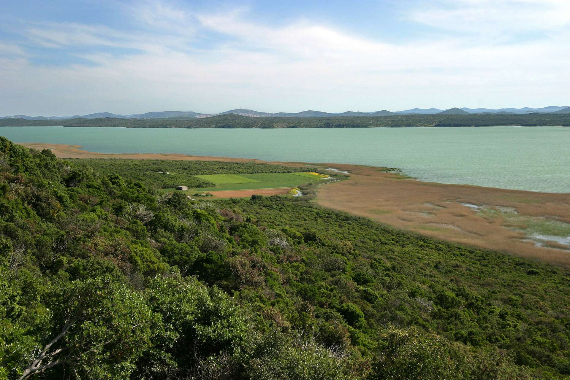 Lake and sea in closest vicinity – that is how we might describe Vransko Lake – the largest natural lake in Croatia. Immersed in the Mediterranean climate, but by no means deep – for the lake is two to five meters deep at the most – Vransko Lake is a natural phenomenon of a submerged karst field full of life. Due to the conservation of a substantial area of reed surfaces and endangered wetland habitats, the lake is an ornithological paradise. It is included in the list of Important Bird Areas in Europe, and the Ramsar List of Wetlands of International Importance. Bird lovers will undoubtedly cherish their visit an unforgettable experience. From hiding places, one can observe the life of birds, their nesting and care for the nestlings. Vransko Lake is a treasure of ornithofauna, with more than 260 bird species recorded so far, over one hundred of them nesting in the territory of the Nature Park. Brackish water provides habitat to a unique combination of marine and freshwater species, which makes the area highly attractive for fishermen. Vransko Lake is connected with the sea by a man-made channel of Prosika, which was dug out back in 1770, and connects the lake with the bay of Pirovac. The panorama trail around the lake is forty kilometers long. Visitors who decide to enjoy a walk frequently stop at the little port of Prosika, and then proceed to the sightseeing point of Kamenjak, which awards visitors with a rare opportunity – a spectacular panorama of both the lake and the Dalmatian islands. The specific position of Vransko Lake right by the sea is the source of all its attractions and its abundant biodiversity. Mediterranean marshlands, Ravni kotari countryside together with the sea and islands make Vransko lake an ideal destination even for the most demanding visitors.